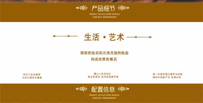 60頭佳人,一個(gè)湯煲,一個(gè)魚(yú)盤(pán),一個(gè)十寸圓盤(pán),一個(gè)飯勺,一個(gè)煙缸,一個(gè)筷子筒,六個(gè)五寸調(diào)味碟,四個(gè)沙拉碟,十個(gè)盤(pán)子,十個(gè)4.5寸飯碗,四個(gè)面碗,十個(gè)調(diào)羹,十個(gè)筷子架。